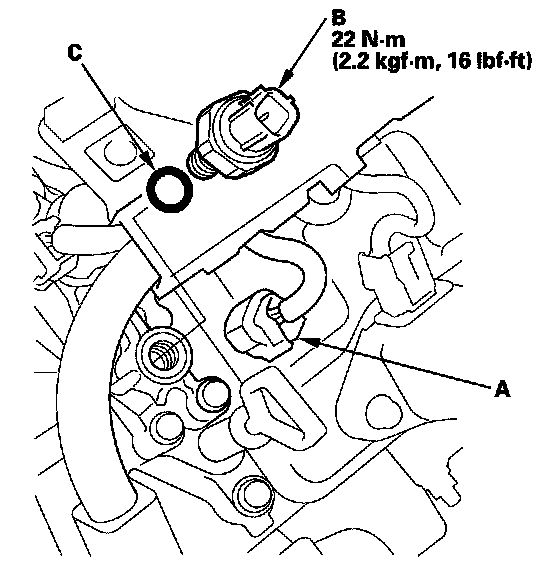 4. Install the parts in the reverse order of removal with a new O-ring (C).