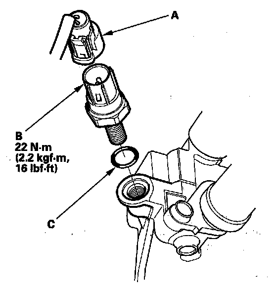 2. Install the parts in the reverse order of removal with a new O-ring (C).
