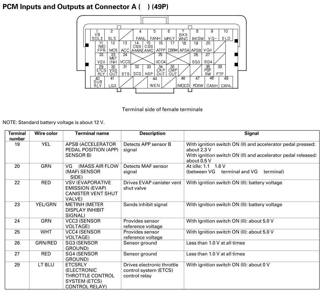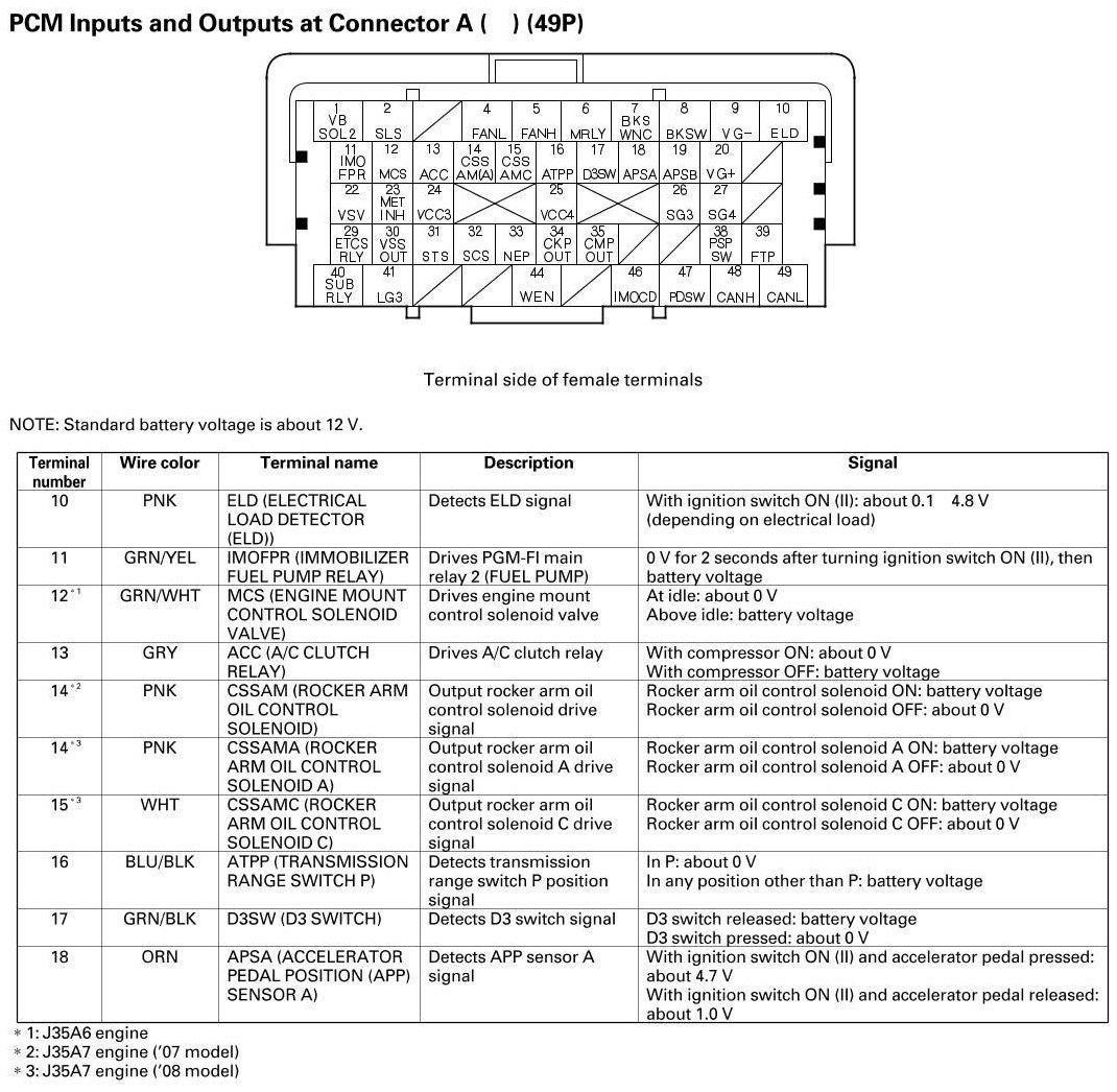 PCM Inputs And Outputs At Connector A