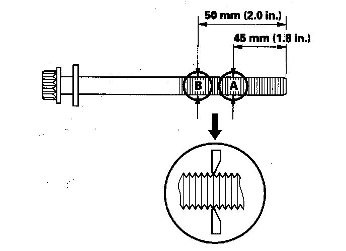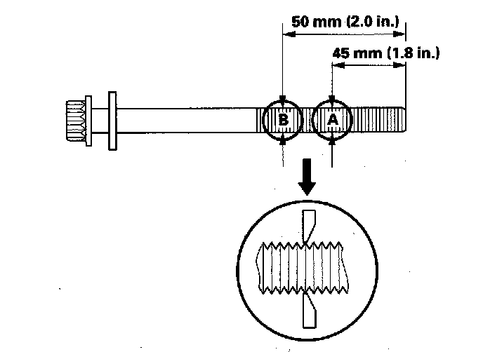 If either diameter is less than 11.3 mm (0.44 in.), replace the cylinder head bolt.
