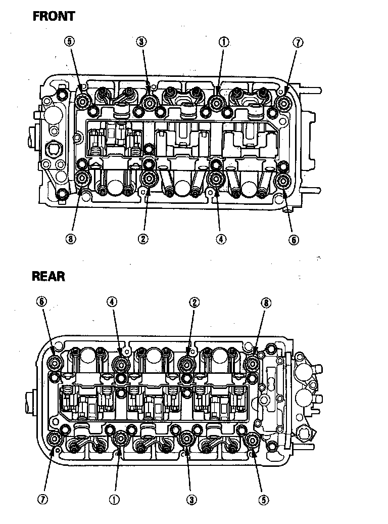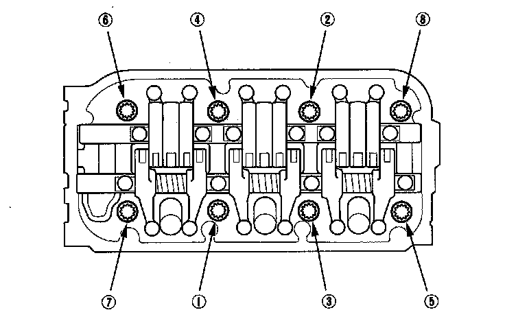 Tighten the cylinder head bolts in sequence to 30 N-m (3.0 kgf-m, 22 lbf-ft)