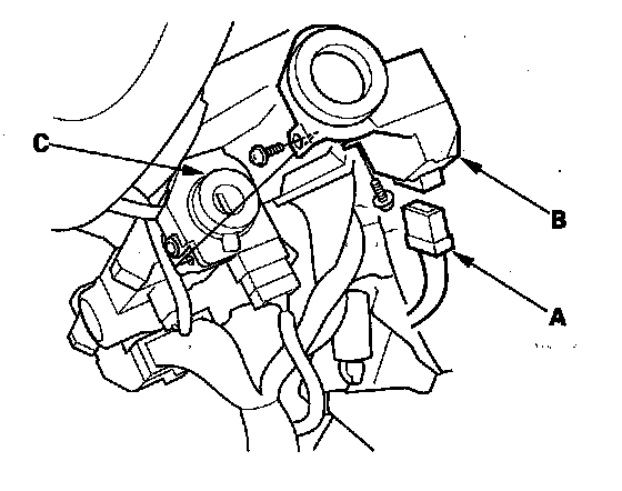4. Remove the two screws and the immobilizer control unit-receiver from the ignition key cylinder (C).