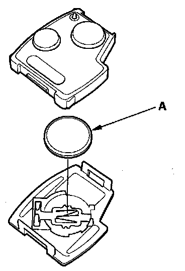 3. Replace the transmitter battery (A) with a new one, and try to lock and unlock the doors with the transmitter by pressing the lock or unlock button five or six times.