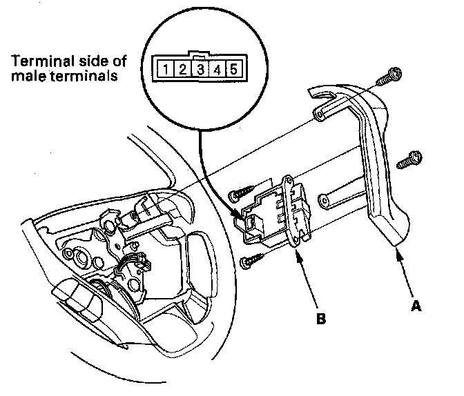 2. Remove the cover (A), then remove the set/decel, resume/accel, cancel switch (B).