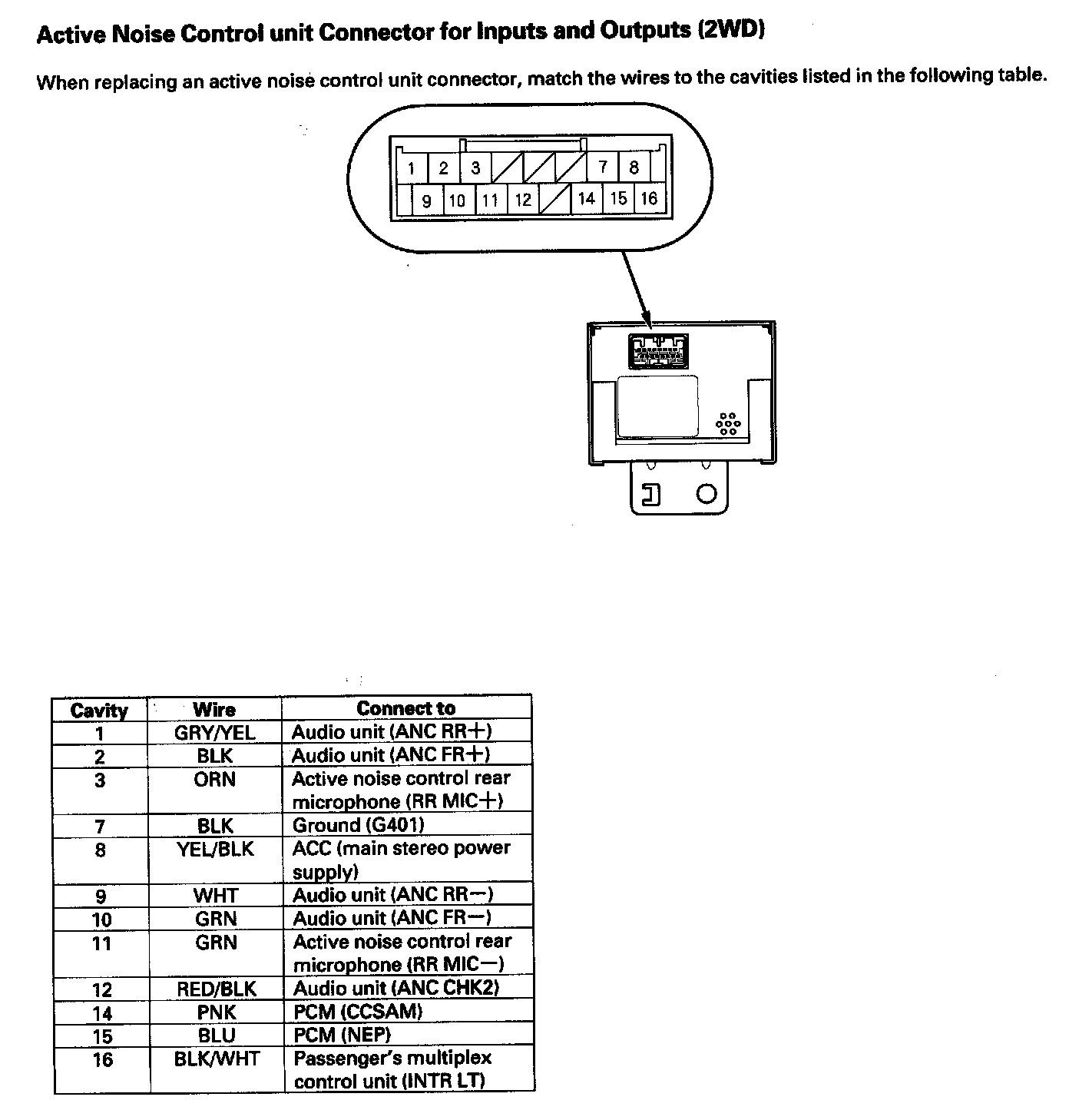 Active Noise Control Unit Connector For Inputs And Outputs (2WD):
