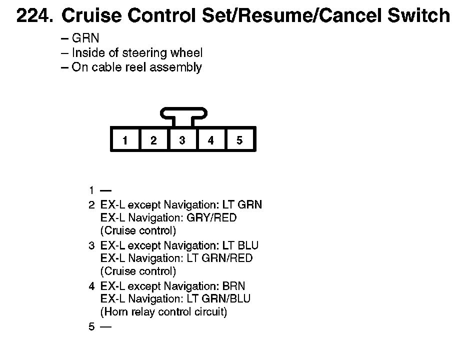 224. Cruise Control Set/Resume/Cancel Switch: