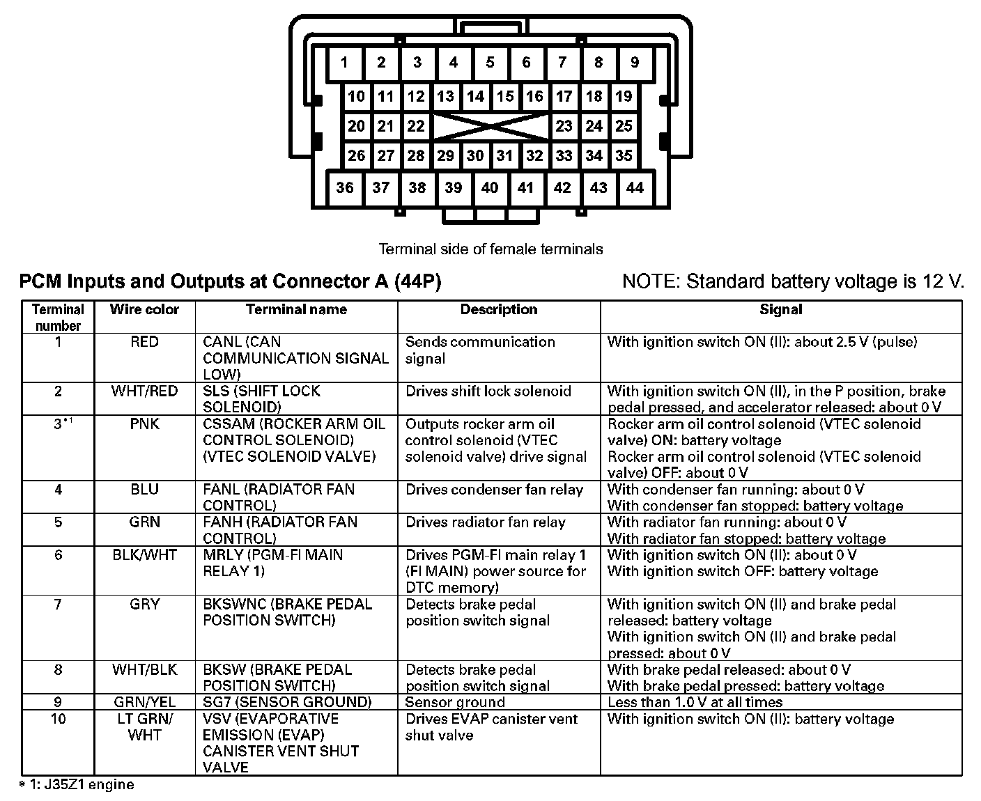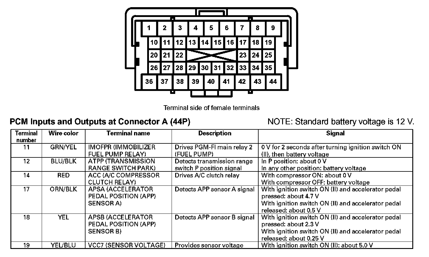 PCM Inputs And Outputs At Connector A (44P) (Part 1):