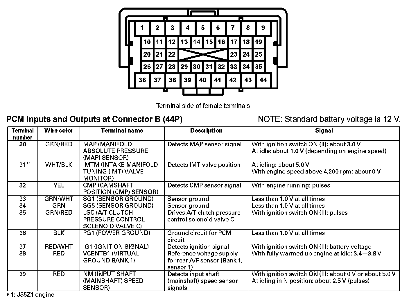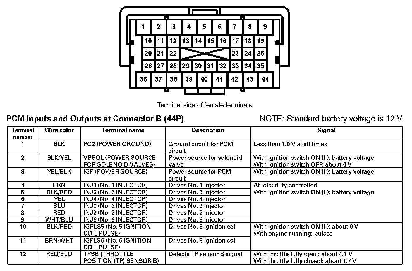 PCM Inputs And Outputs At Connector B (44P) (Part 1):