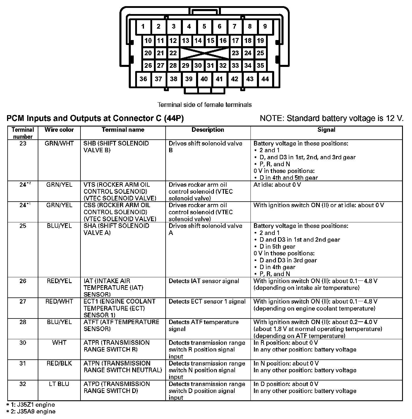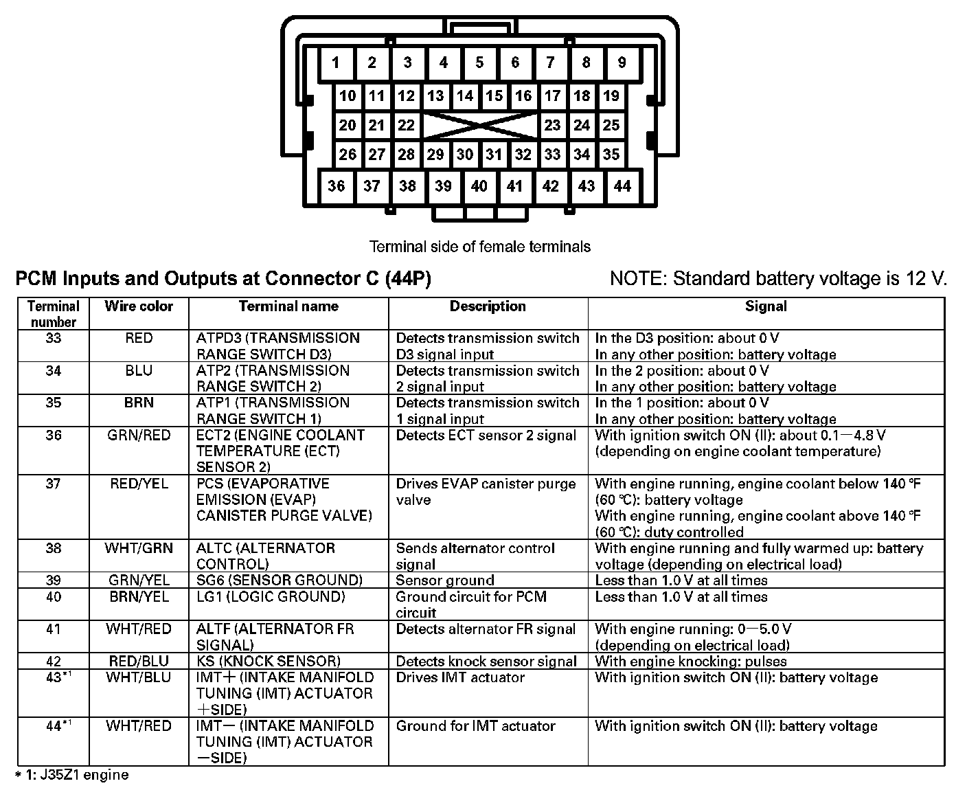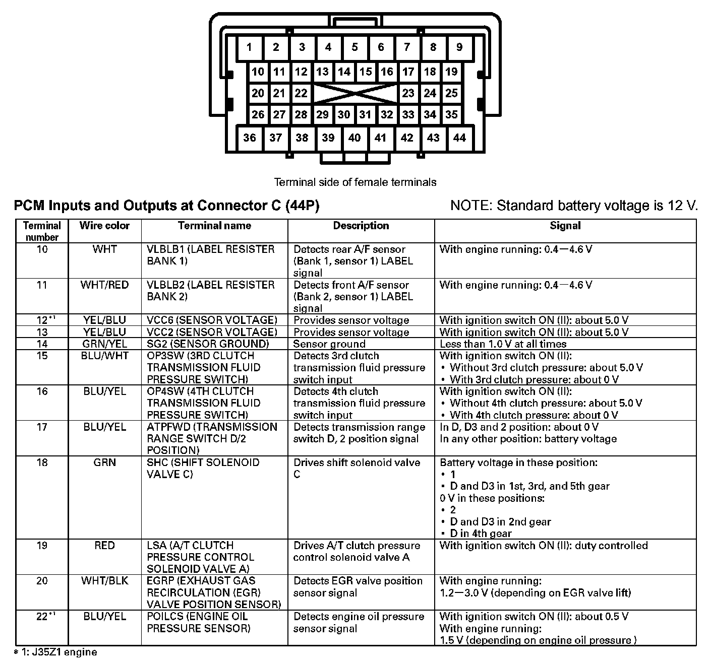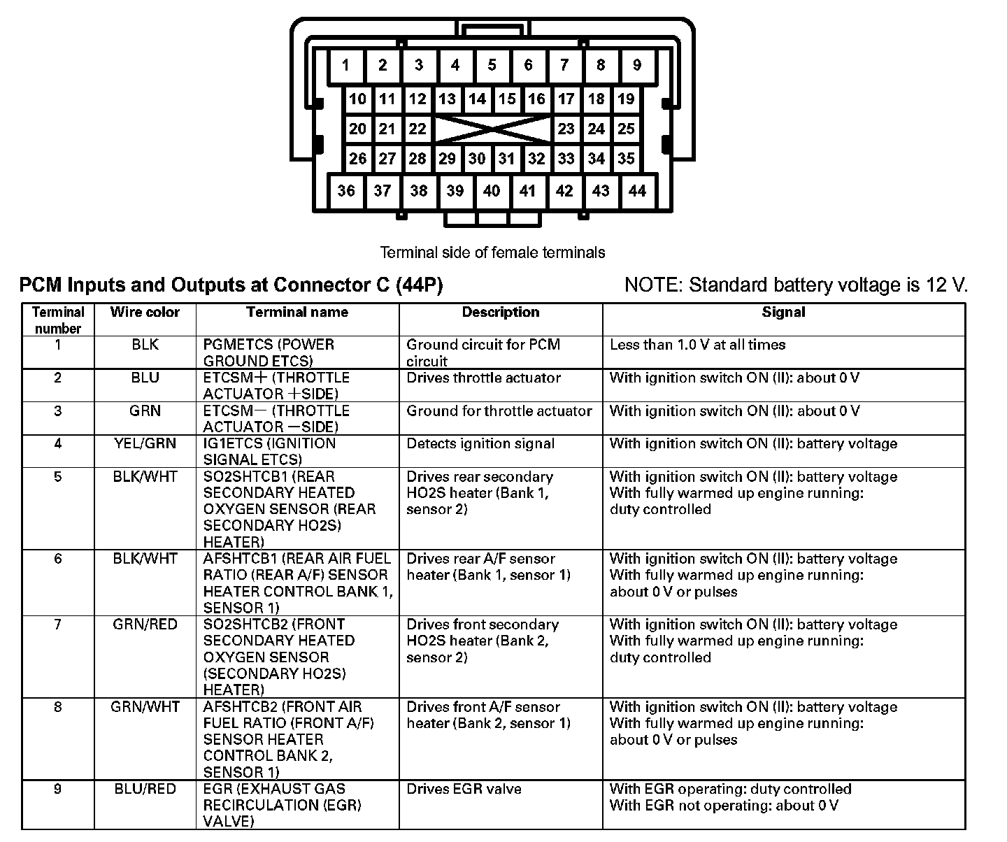 PCM Inputs And Outputs At Connector C (44P) (Part 1):