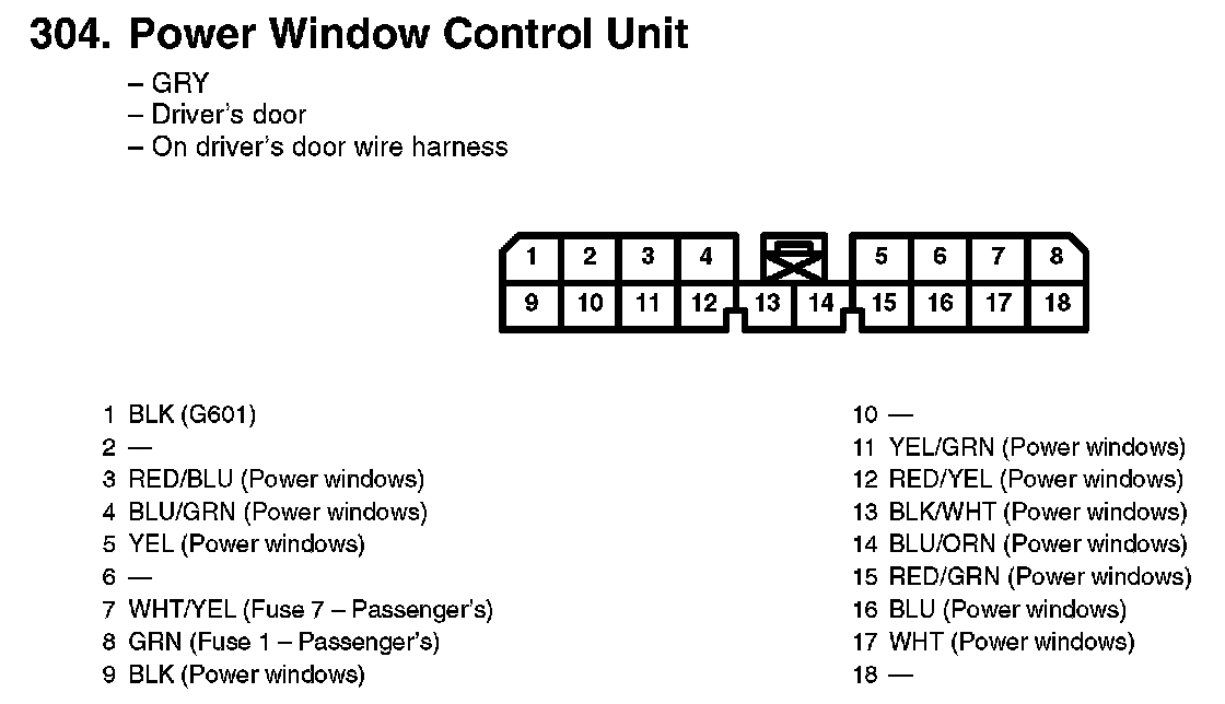 304. Power Window Control Unit: