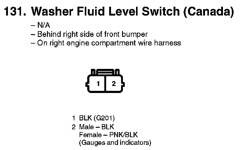 131. Washer Fluid Level Switch (Canada):