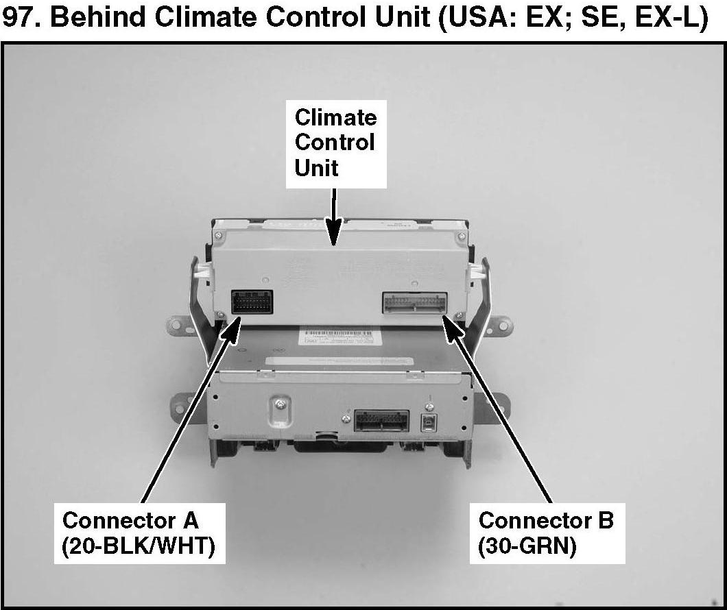 97. Behind Climate Control Unit (USA: EX; SE, EX-L):