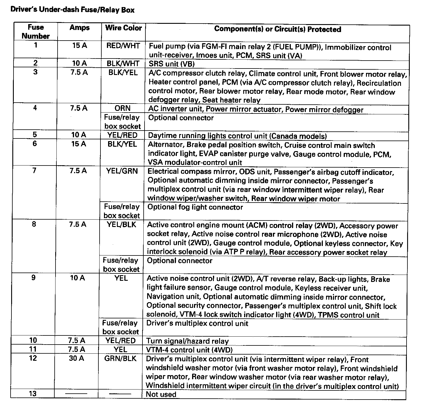 Driver's Under-dash Fuse/Relay Box (Part 1):