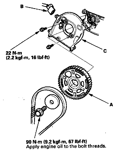 3. Disconnect the CMP sensor connector (B), then remove the back cover (C).