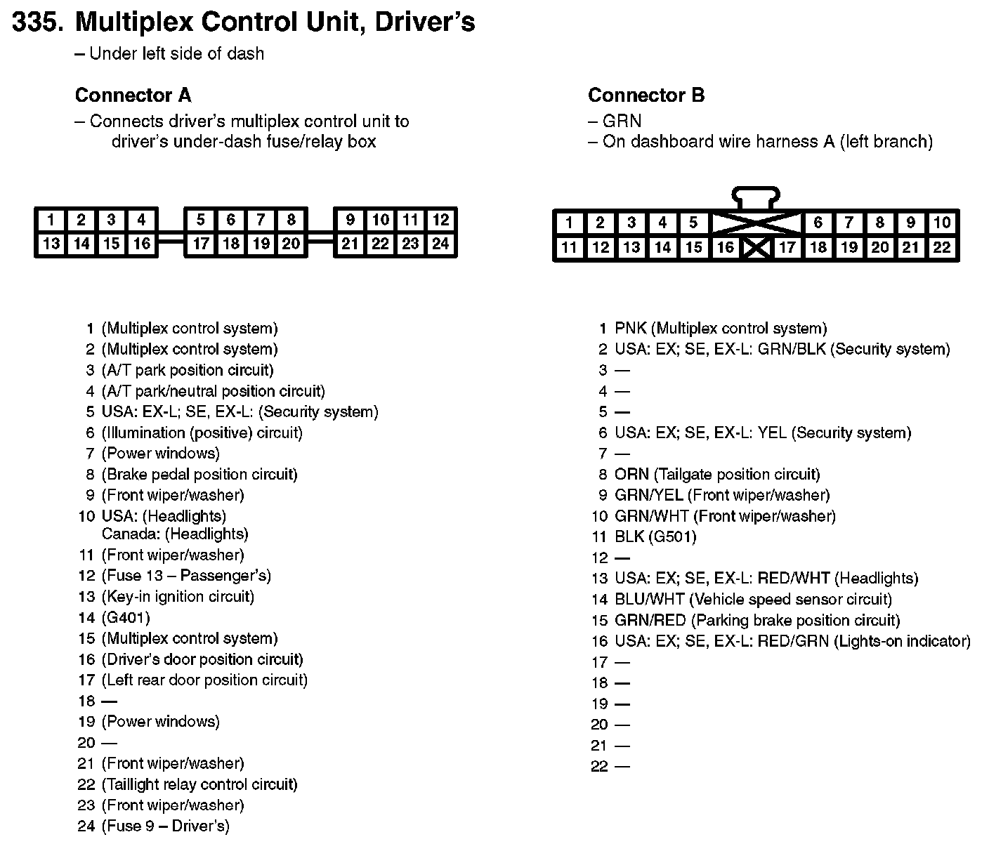 335. Multiplex Control Unit, Driver's: