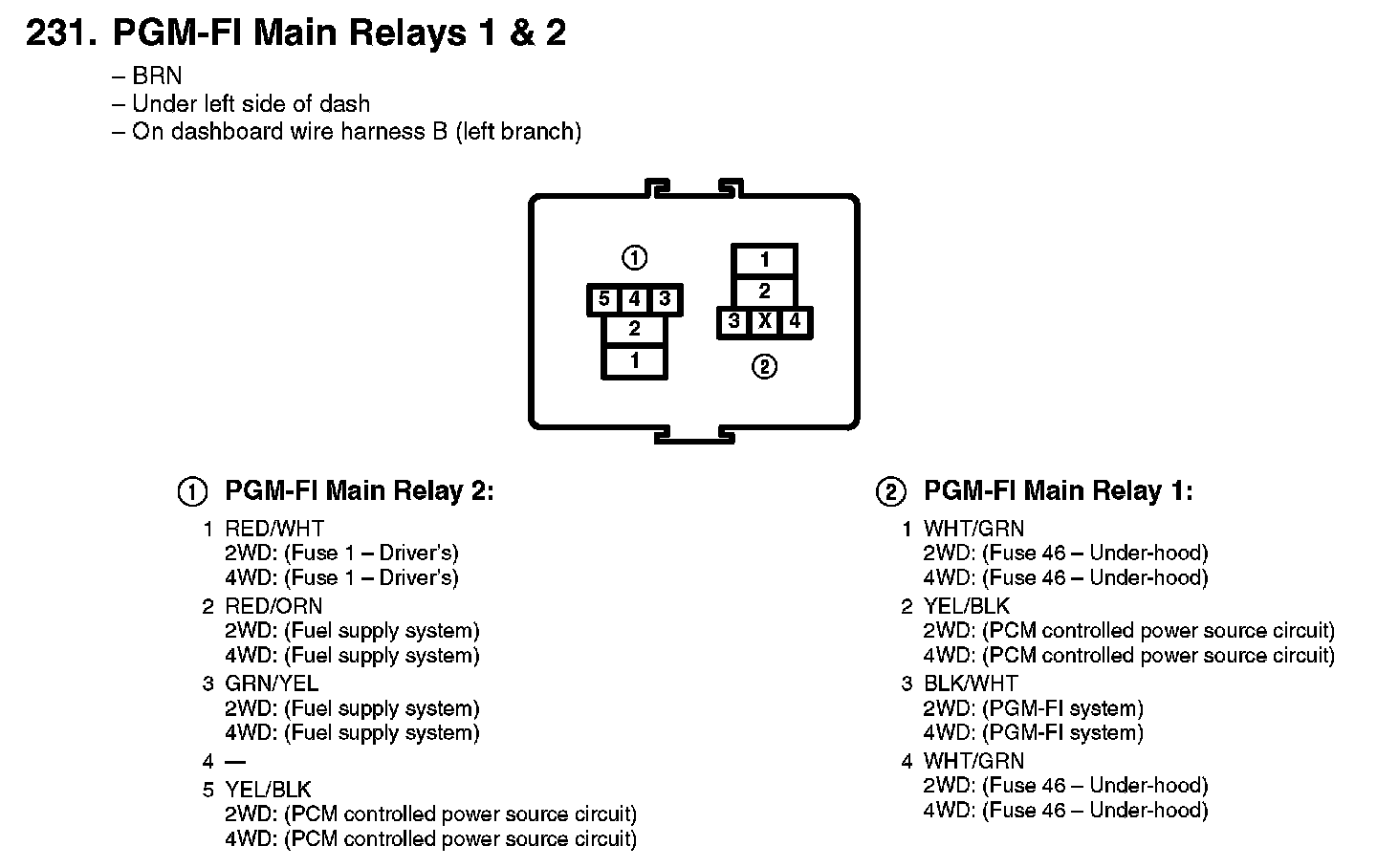 231. PGM-FI Main Relays 1 & 2: