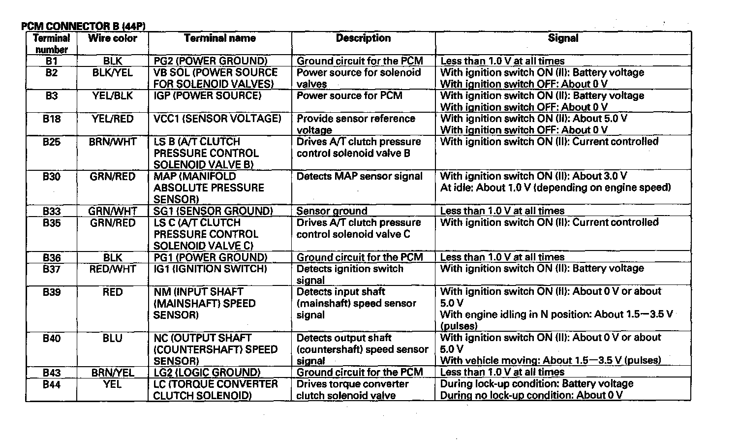 PCM A/T Control System Inputs and Outputs (Part 1):