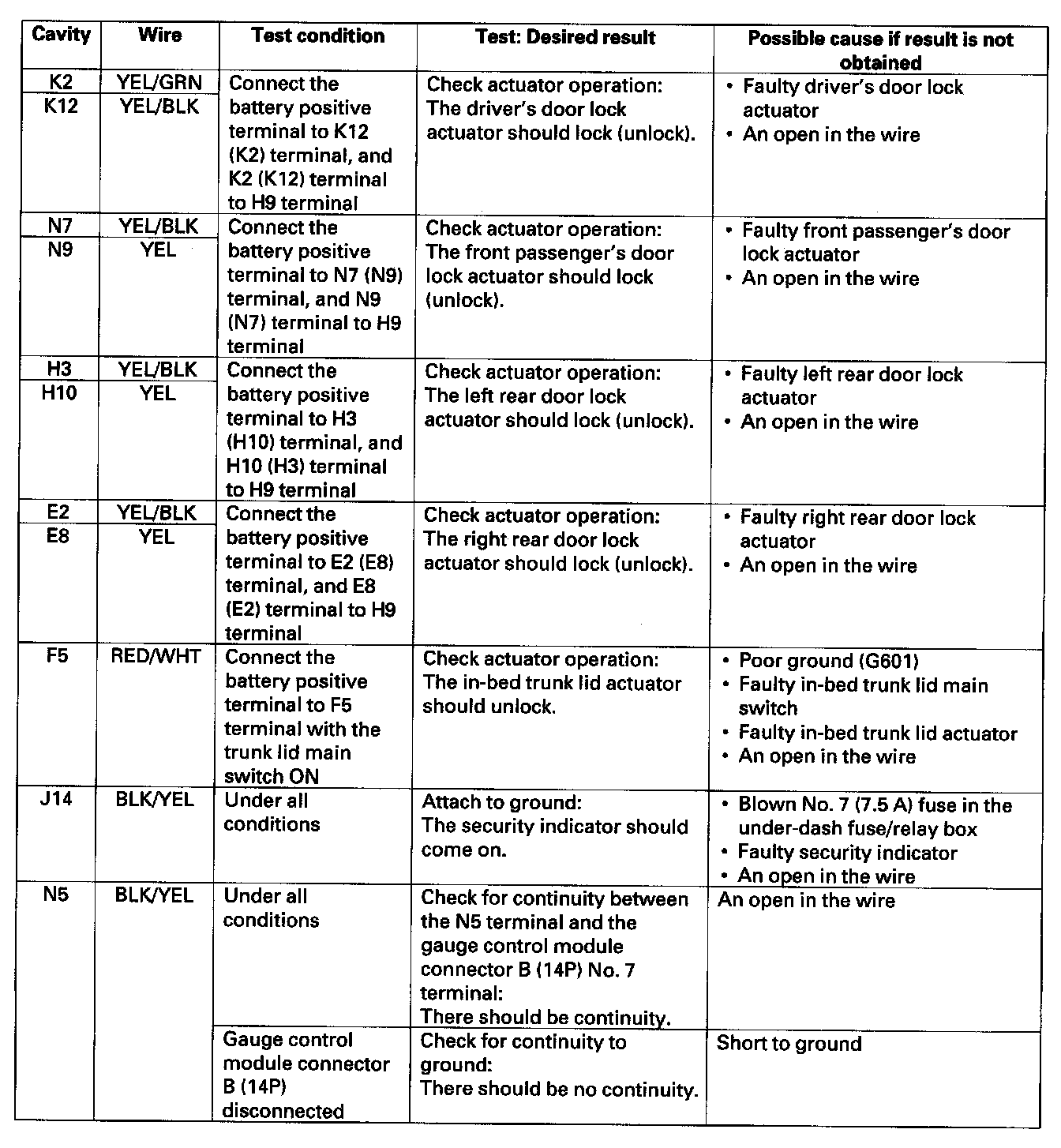 Control Unit Input TestNOTE: Before troubleshooting the keyless entry/security control system, troubleshoot the multiplex integrated control system first using B-CAN System Diagnosis Test Mode A.