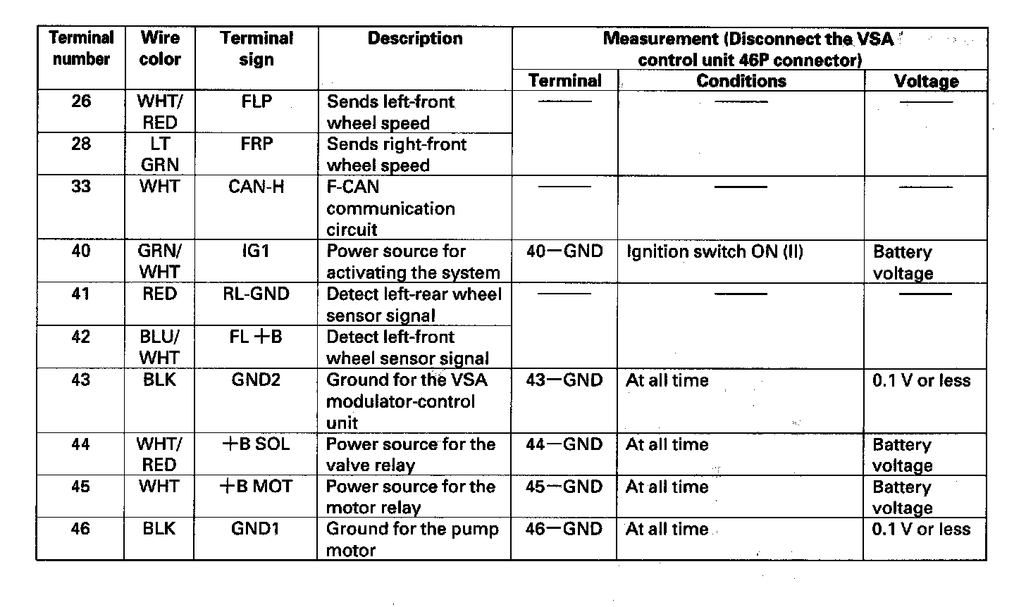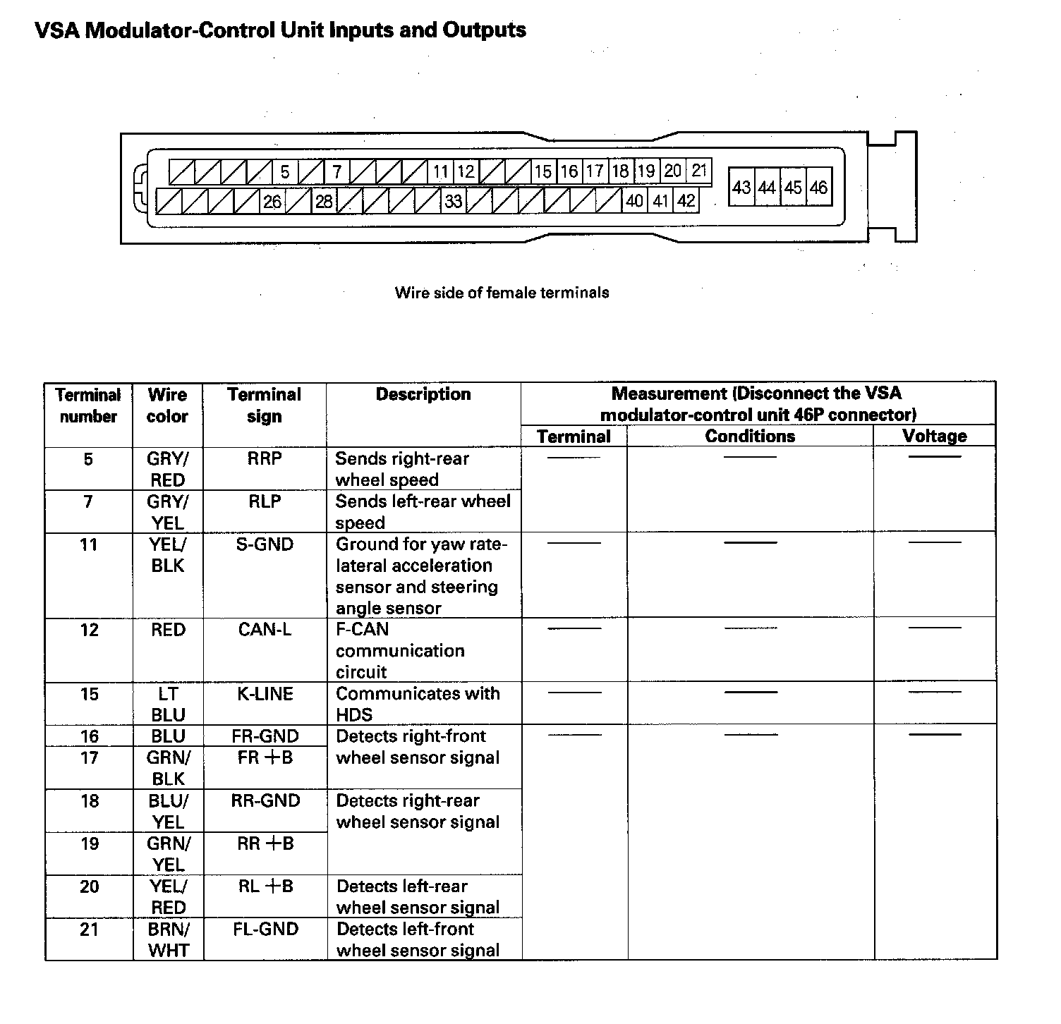 VSA Modulator-Control Unit Inputs and Outputs (Part 1):