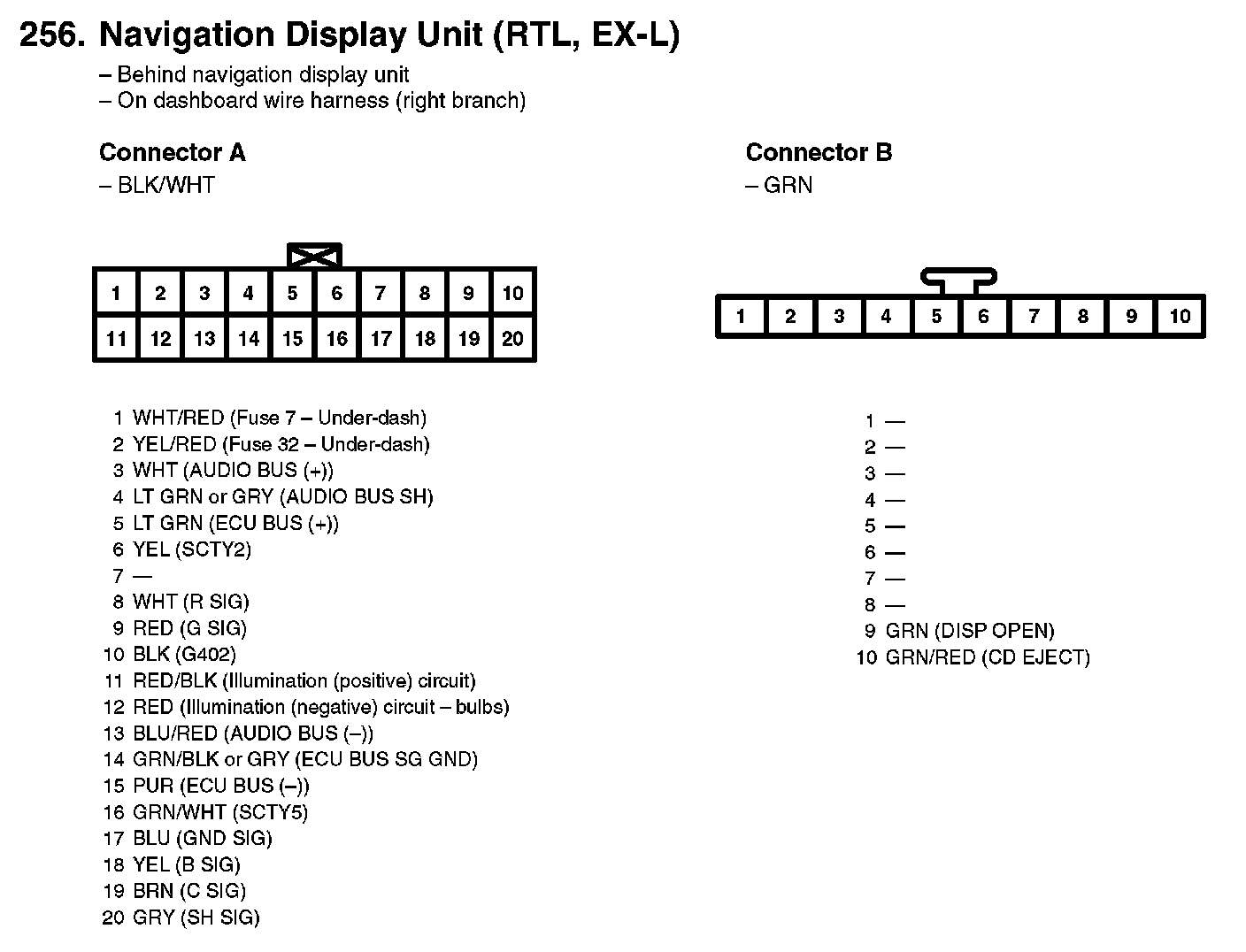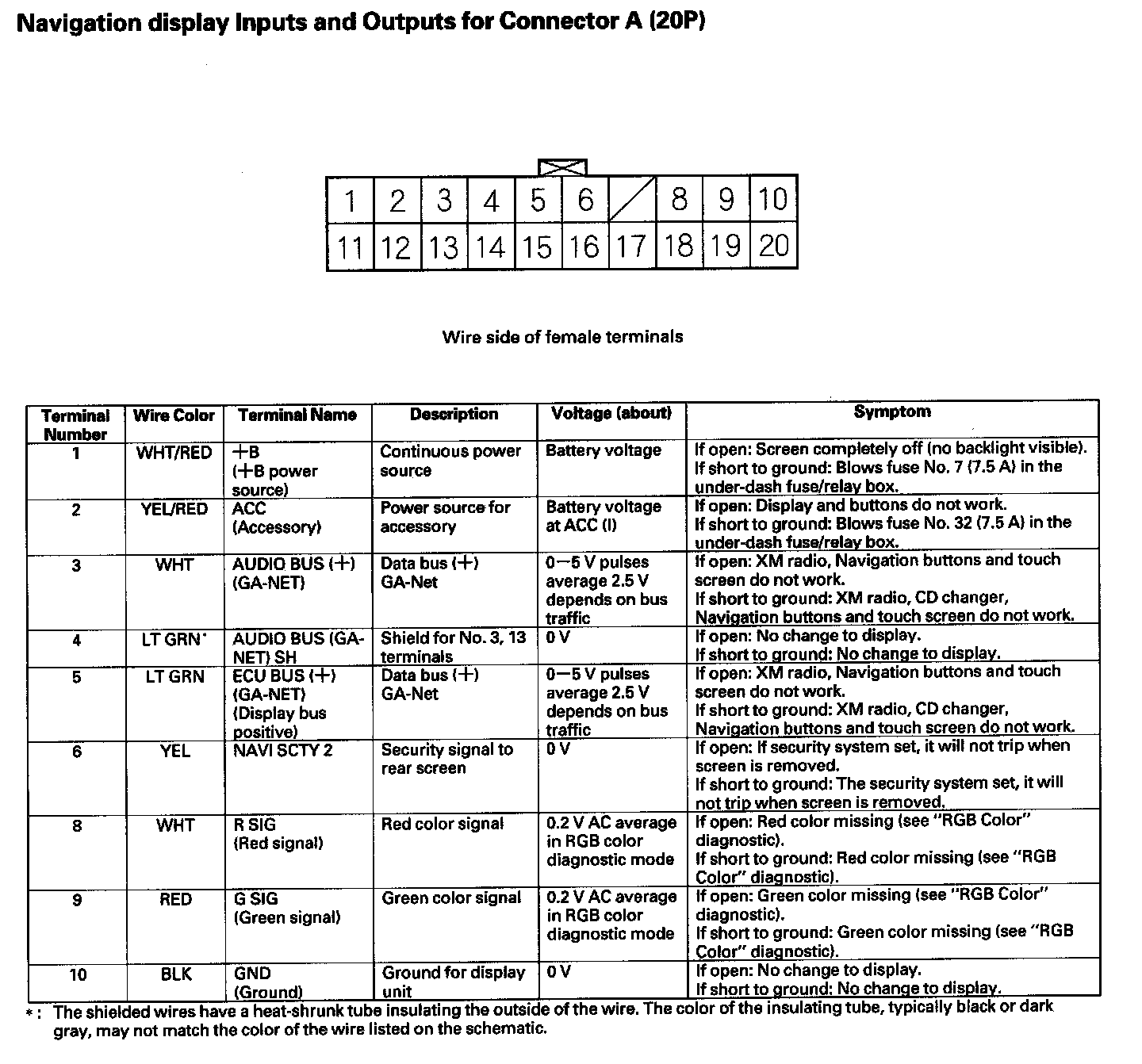 Navigation Display Inputs And Outputs For Connector A (20P) Part 1: