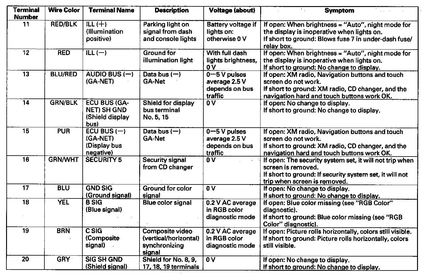Navigation Display Inputs And Outputs For Connector A (20P) Part 2: