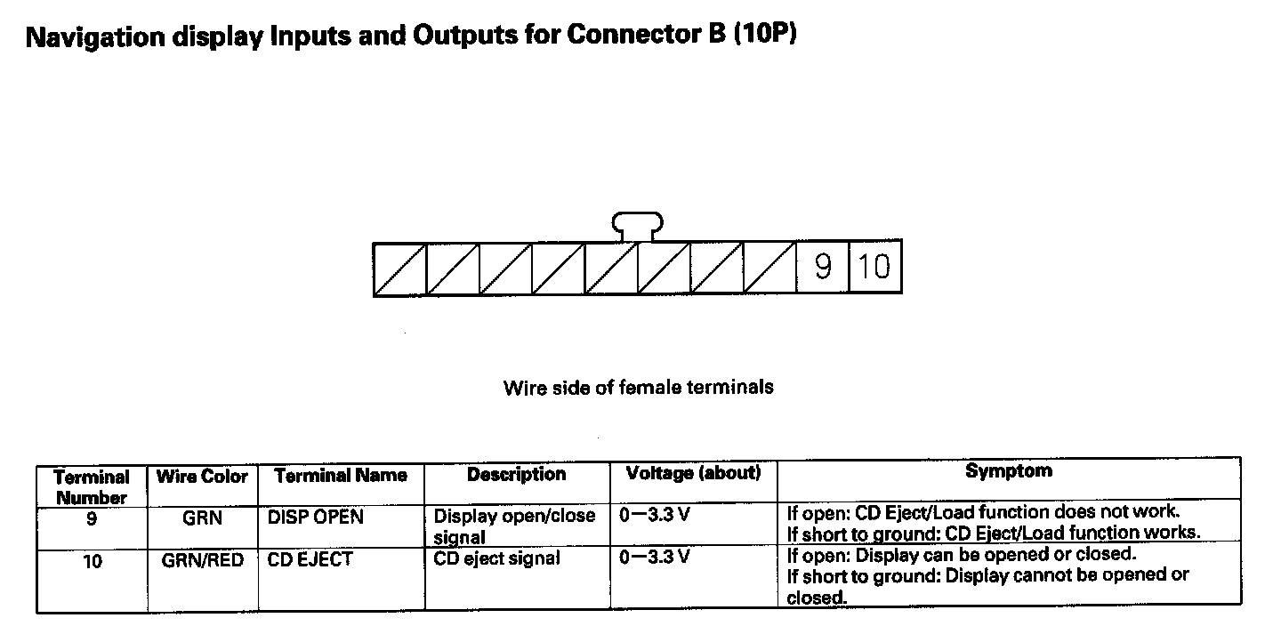 Navigation Display Inputs And Outputs For Connector B (10P):