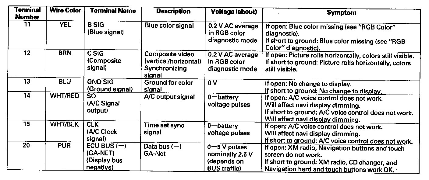 Navigation Unit Inputs And Outputs For Connector A (20P) Part 2: