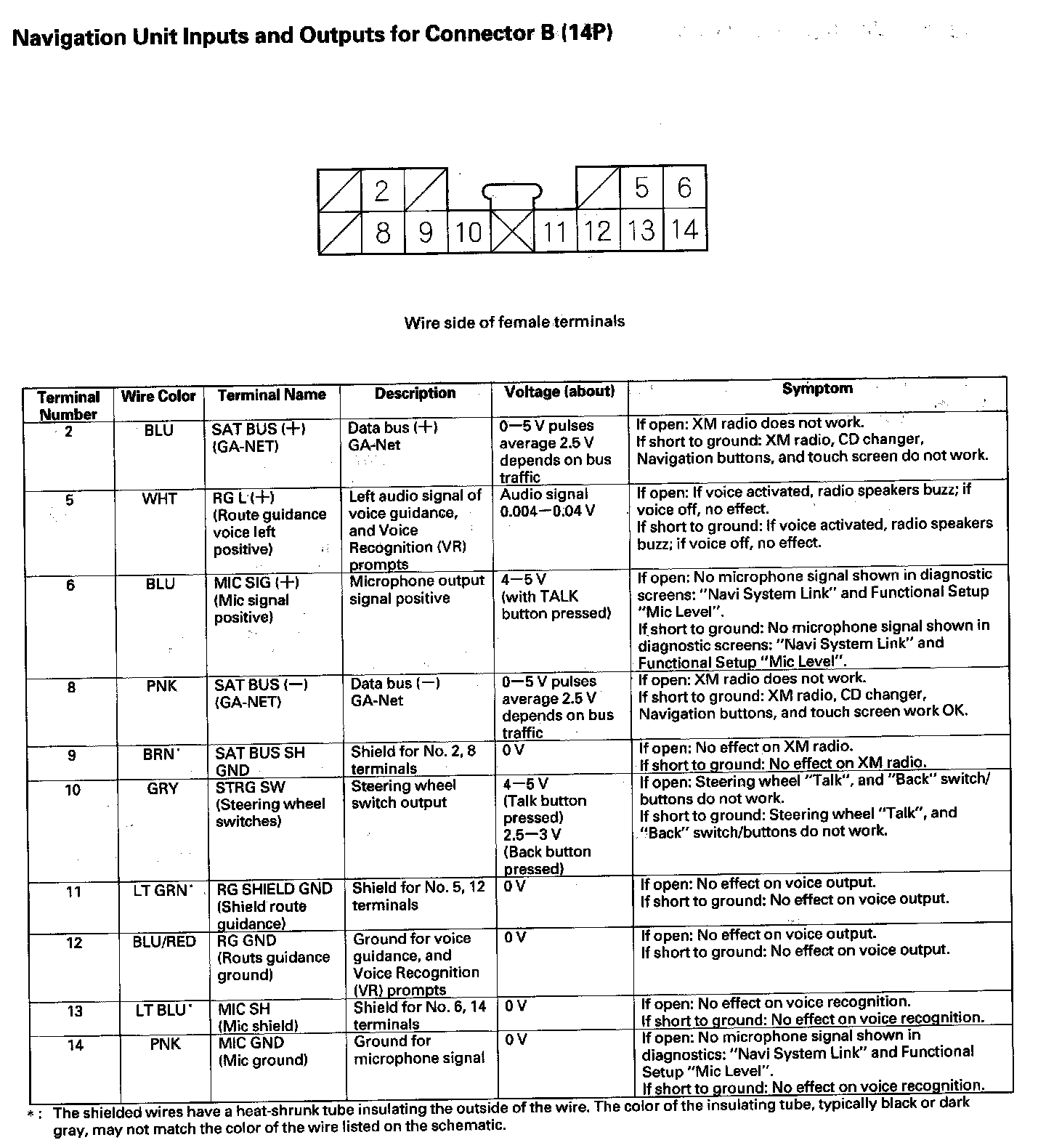 Navigation Unit Inputs And Outputs For Connector B (14P):