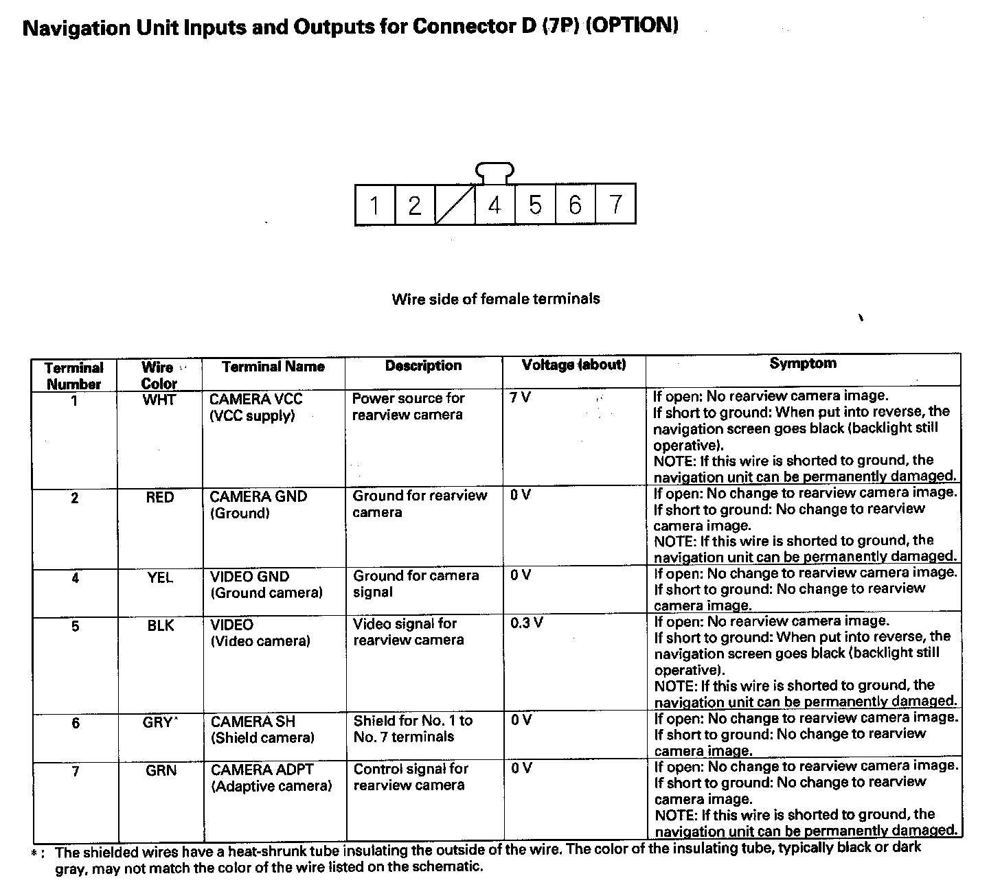 Navigation Unit Inputs And Outputs For Connector D (7P) (OPTION):