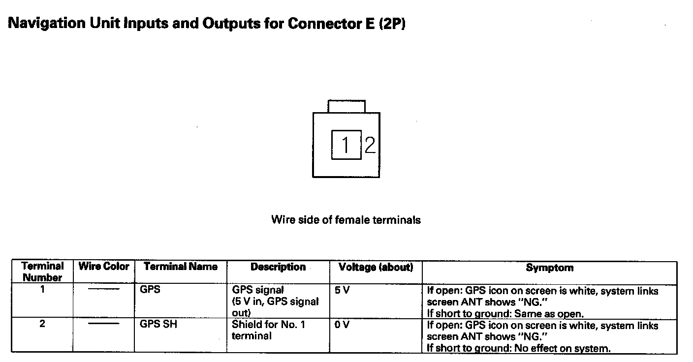 Navigation Unit Inputs And Outputs For Connector E (2P):
