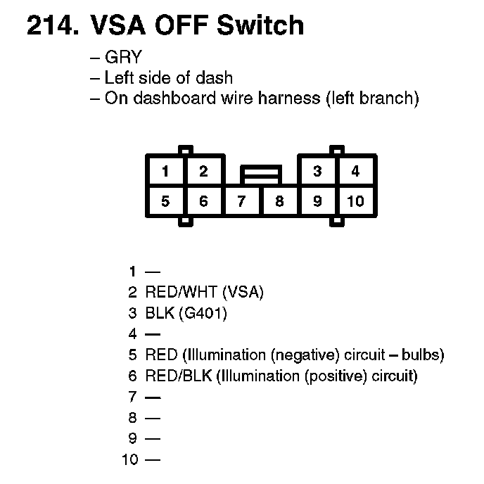 214. VSA OFF Switch: