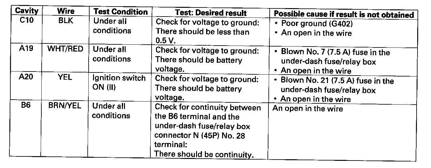 Gauge Control Module Input TestNOTE: Check the No. 22 (120 A), No. 23 (50 A), No. 15 (40 A) fuse in the under-hood fuse/relay box before troubleshooting.