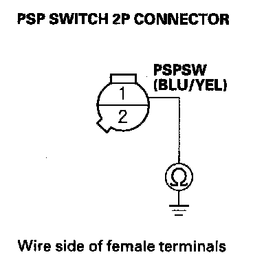 13. Check for continuity between PSP switch 2P connector terminal No. 1 and body ground.
