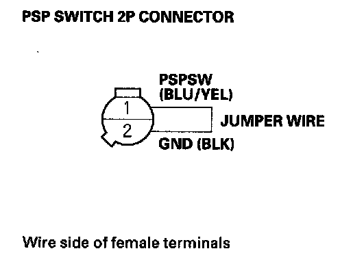 19. Remove the jumper wire from the PSP switch 2P connector.