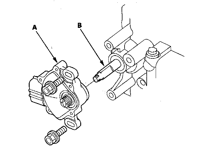 14. Install the transmission range switch (A) gently over the selector control shaft (B), and install the bolts loosely.