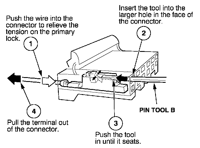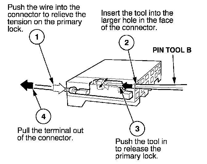 Before you begin, inspect the wire you are about to repair for damage and length. Make sure the wire will be long enough to make a terminal repair without stretching it when you reinstall the terminal in the connector. If the wire is too short, or if access to the connector is too restricted to make a terminal repair, you may need to install a pigtail terminal (a short length of wire with a factory-crimped terminal on it). Refer to HOW TO INSTALL PIGTAIL TERMINALS.