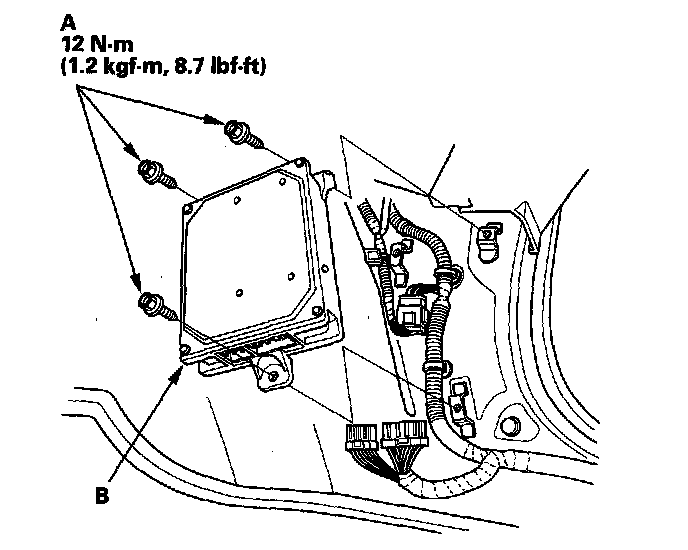 2. Remove the three bolts (A) from the VTM-4 control unit (B).