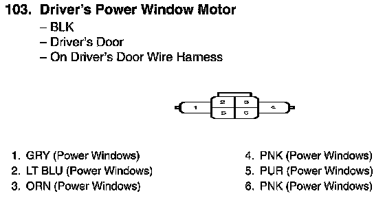 View 103 Driver's Power Window Motor Connector View