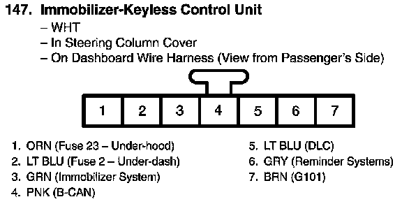 View 147 Immobilizer-Keyless Control Unit Connector View