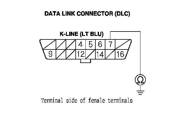 17. Check for continuity between DLC terminal No. 7 and body ground.