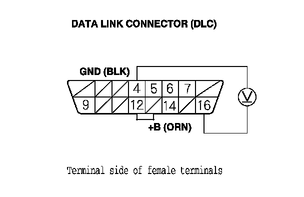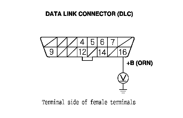 25. Measure the voltage between DLC terminal No. 16 and body ground.