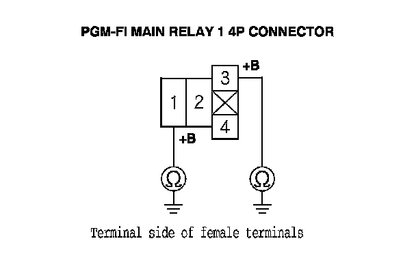 41. Check for continuity between body ground and PGM-FI main relay 1 4P connector terminals No. 1 and No. 3 individually.