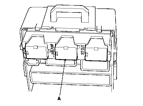 47. Remove PGM-FI main relay 2 (FUEL PUMP) (A) from the under-dash fuse/relay box.
