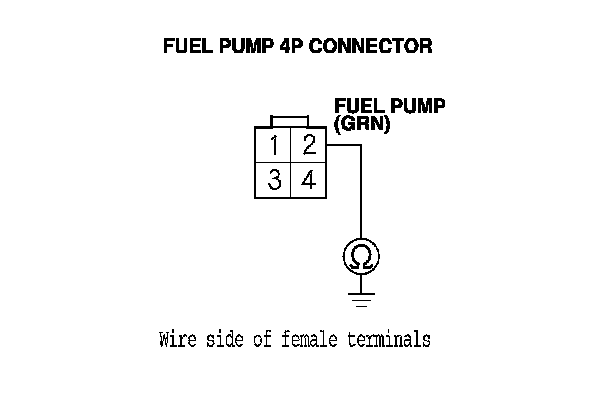 49. Check for continuity between PGM-FI main relay 2 (FUEL PUMP) 4P connector terminal No. 1 and body ground.