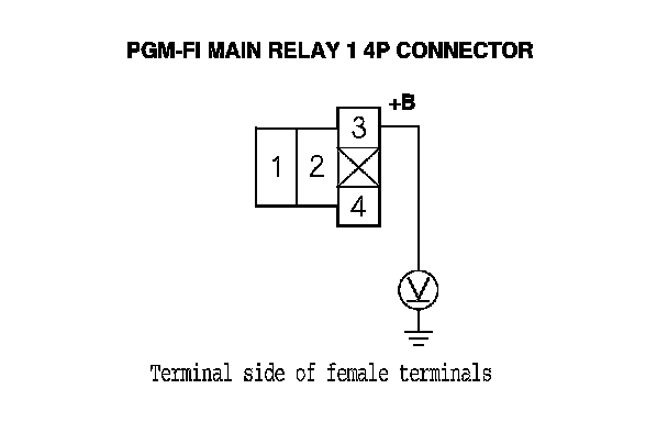 68. Measure the voltage between PGM-FI main relay 1 4P connector terminal No. 1 and body ground.