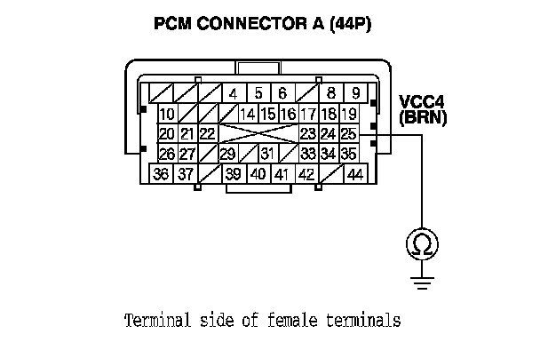 32. Check for continuity between PCM connector terminal A36 and body ground.