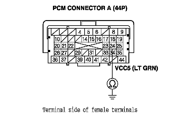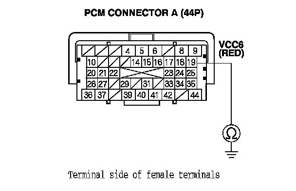 61. Measure the voltage between PCM connector terminal A6 and body ground.