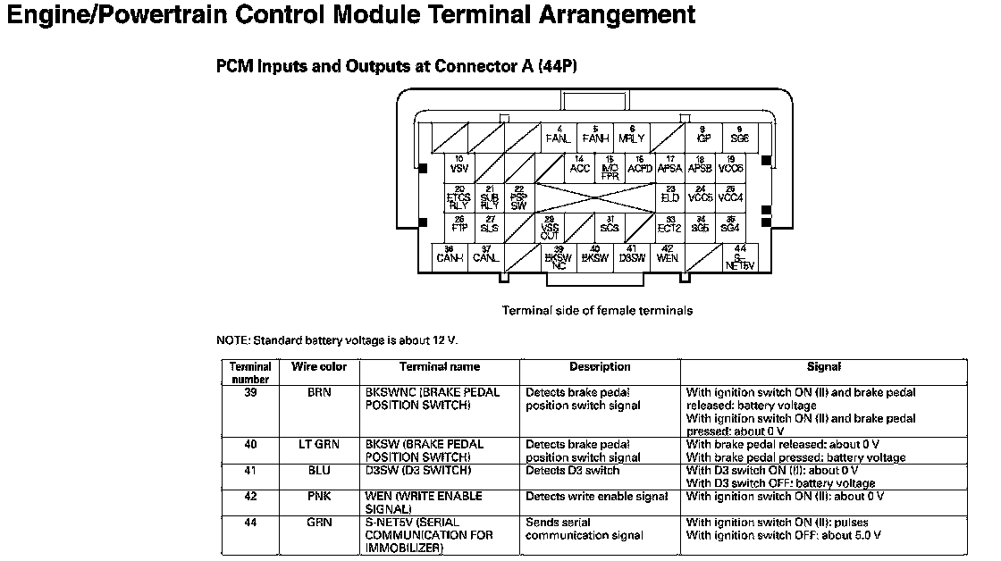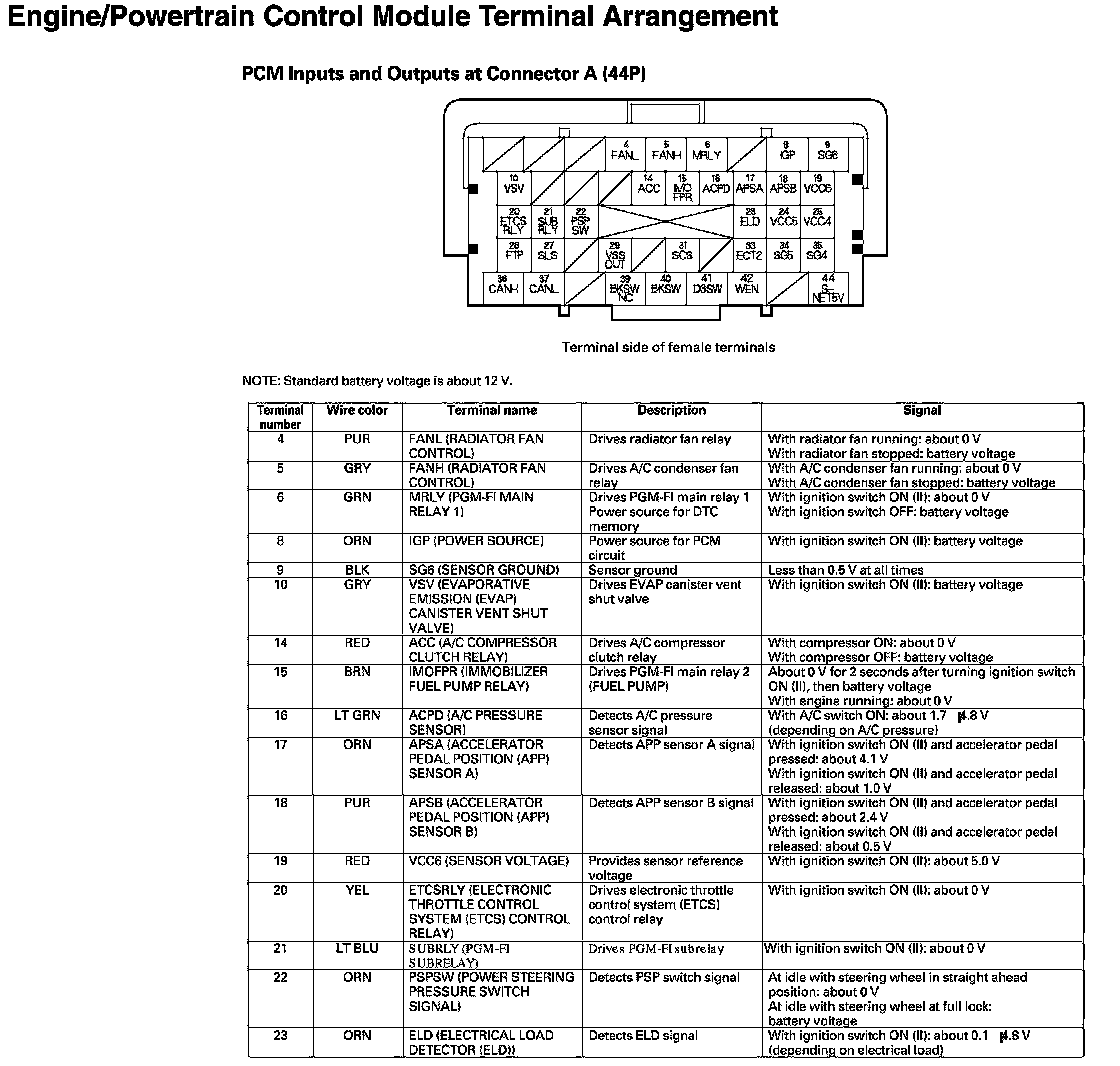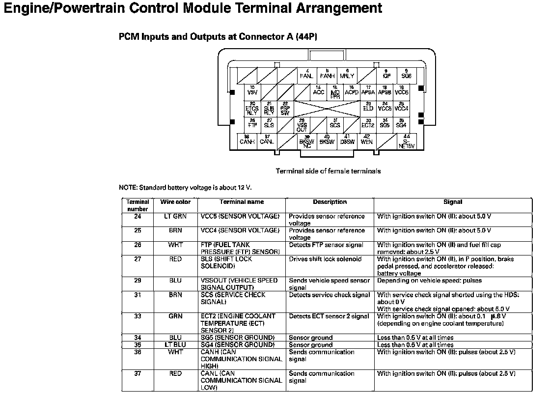 PCM Inputs And Outputs At Connector A
