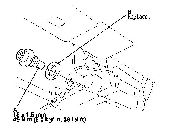 6. Remove the drain plug (A), and drain the transmission fluid (ATF).