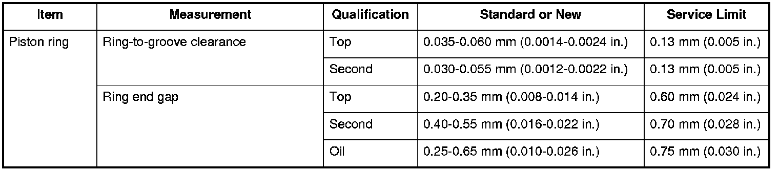 Piston Ring Specifications